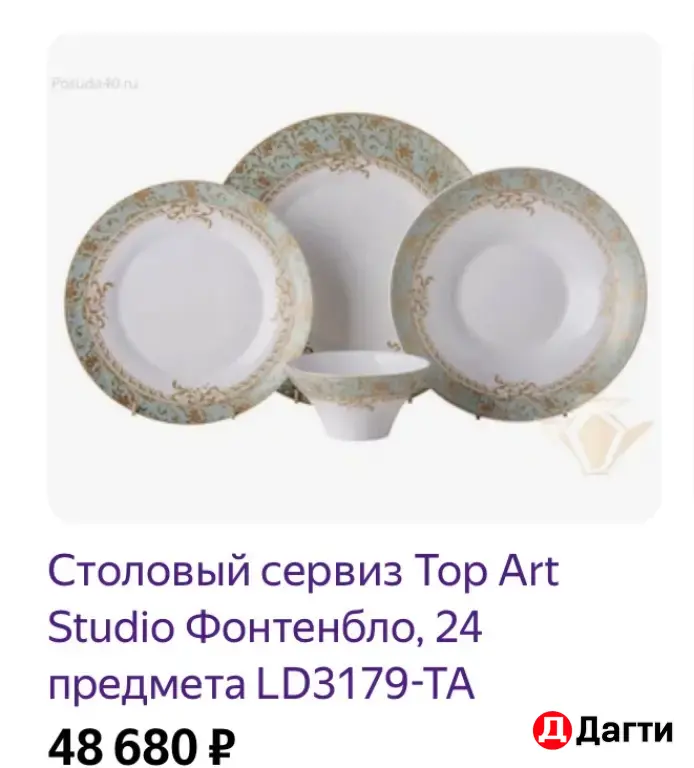 Отдаю дешево, из-за недостающих тарелок, покупала намного дороже. В карусели есть фото реальной цены аналогичного сервиза. Реальному клиенту торг.