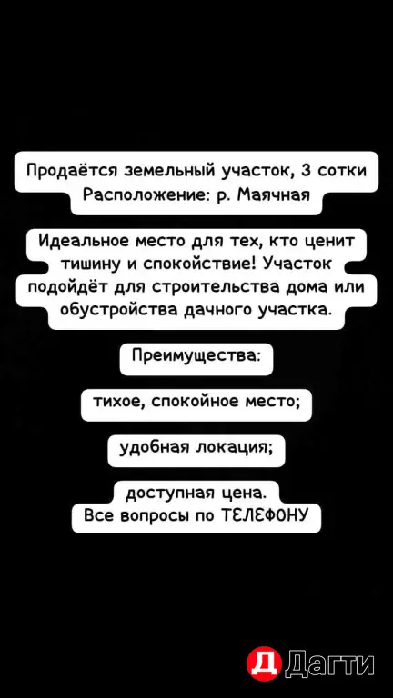 ПРОДАМ УЧАСТОК НА МАЯЧНОЙ СРОЧНО!!!
