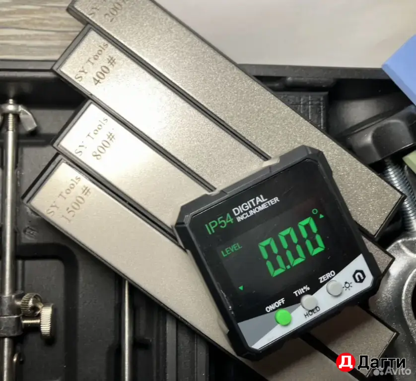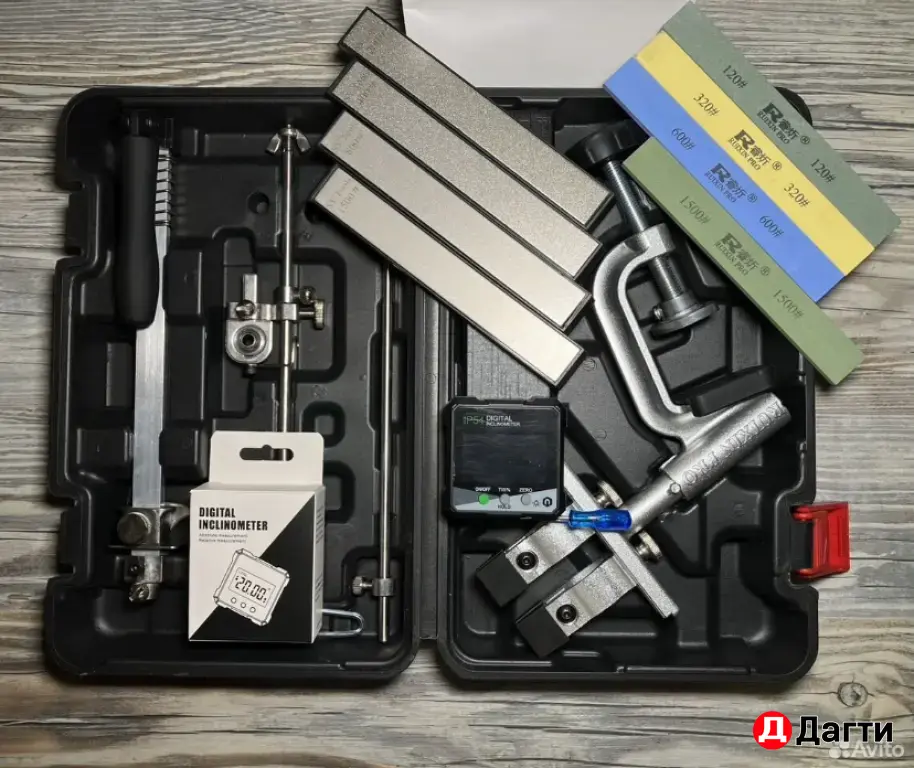 Сама точилка/пластиковый бокс/инструкция/4 водных камня/4 алмазных бруска SyTools/угломер