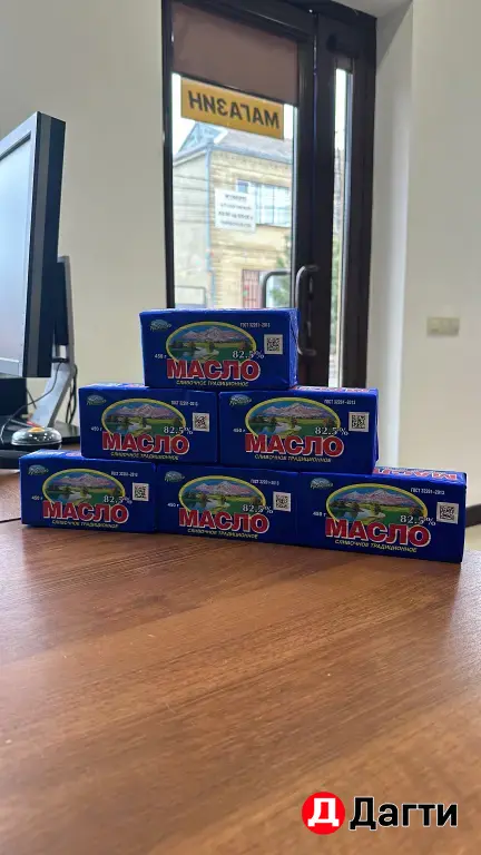 В продаже сливочное масло 82,5% жирности, отличное качество у масла. Продукция закупается непосредственно у самого производителя в городе Пятигорск. Есть три вида фасовки: