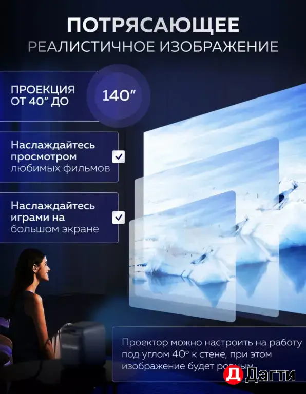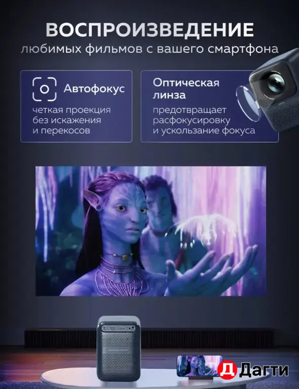 Доп. опции проектора: Android 9.0; HDR; Miracast