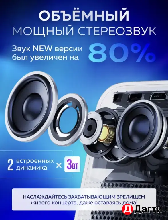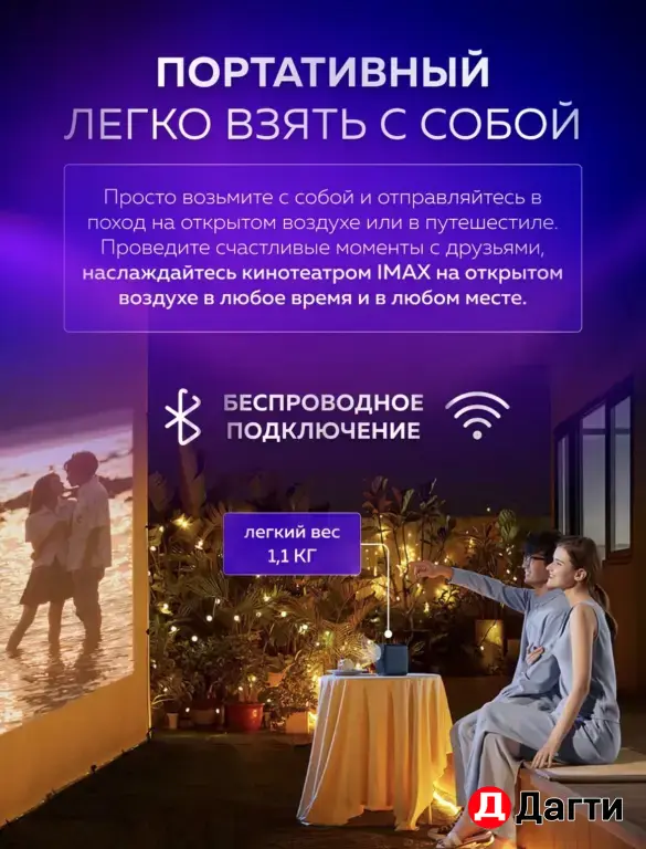 Комплектация: проектор; пульт; зарядное устройство.