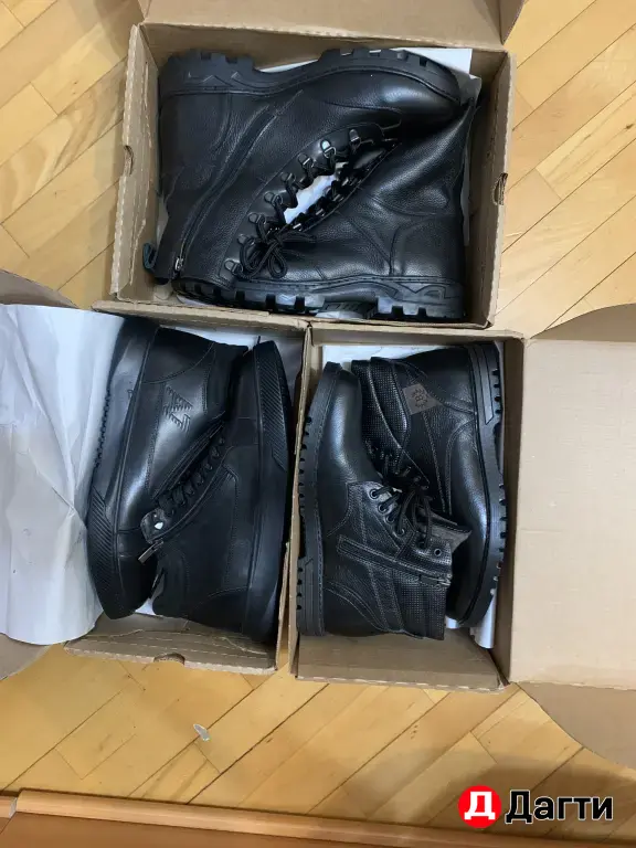 45 размер — 2 пары (высокие берцы на шнуровке и классические ботинки на молнии).