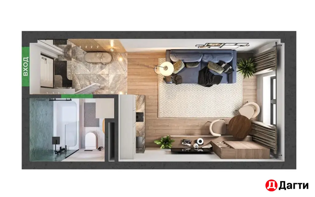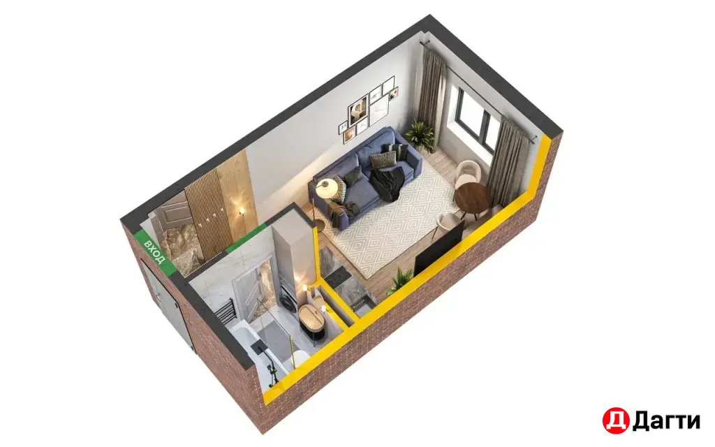 Студия 20.85 квадратных метров на 1 - этаже 3 этажного жилого дома .